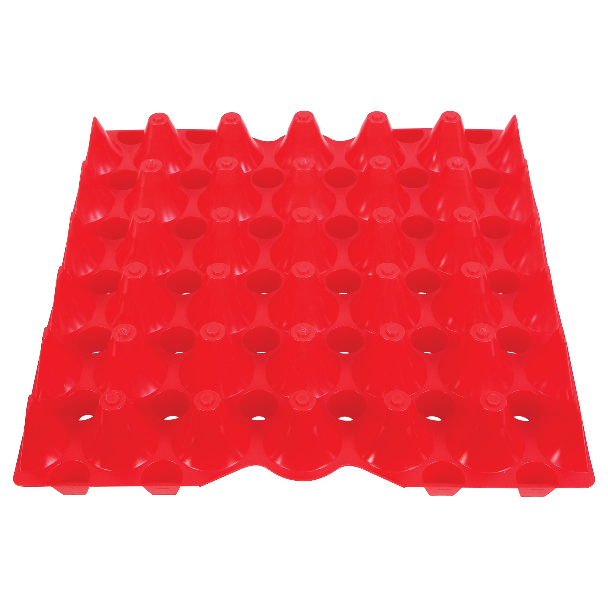 The egg tray is made from a special blend of plastic which affords the egg tray a great deal of stability but is flexible enough to protect the eggs and minimize breakages. They are available in different colors for coding and are easily stacked.